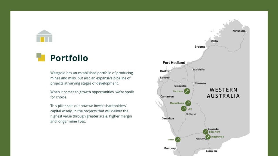 Westgold has an established portfolio of producing mines and mills, but also an expansive pipeline of projects at varying stages of development.